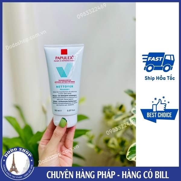 – Lấy một lượng vừa đủ Papulex Moussant ra tay, tạo bọt nhẹ.