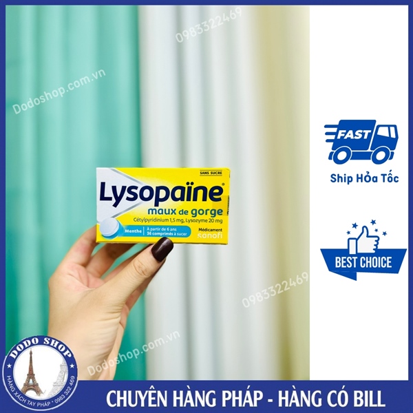 Viên ngậm Lysopaine maux de gorge vị bạc hà giúp giảm sưng rát họng cho cả gia đình, hộp 36v